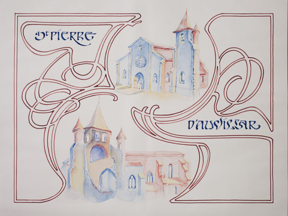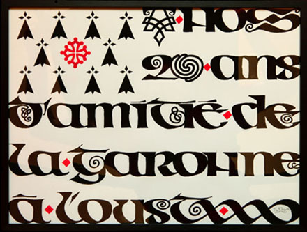 Quelques styles calligraphiques en commandes, départ du prêtre de sa paroisse, faire-parts, jumelages culturels inter-villages.