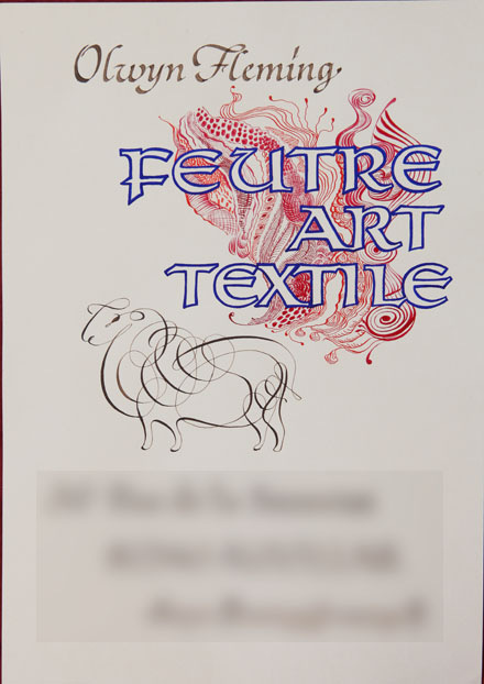 Publié le 26 octobre 201527 octobre 2015 par brunoriboulot Commande pour affiche de présentation d’une créatrice en textiles de feutre (laine mouton). Projet d’ensemble (coordonnées personnelles floutées) À la plume d’Anglaise Partager : Cliquer pour partager sur X(ouvre dans une nouvelle fenêtre) X Cliquez pour partager sur Facebook(ouvre dans une nouvelle fenêtre) Facebook J’aime chargement… Similaire