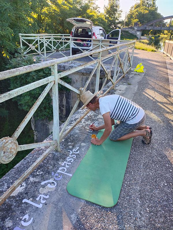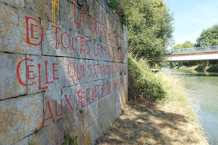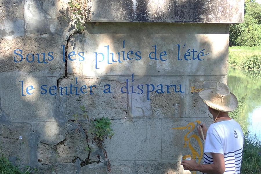 Commissionné par celle-ci avec le soutien du Conseil départemental et de Voies Navigables de France, réalisation d’une vingtaine de calligraphies vagabondes.