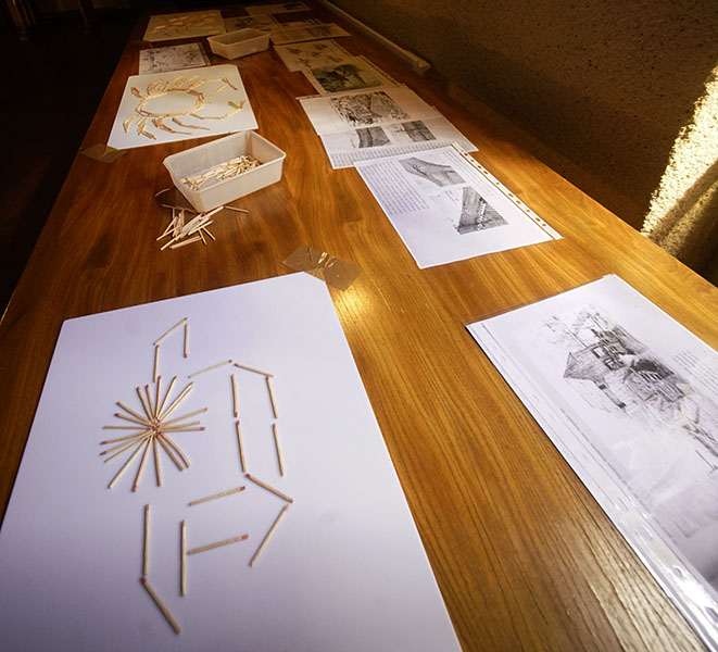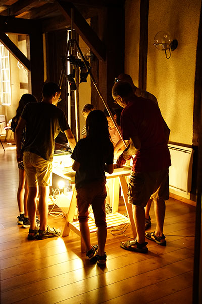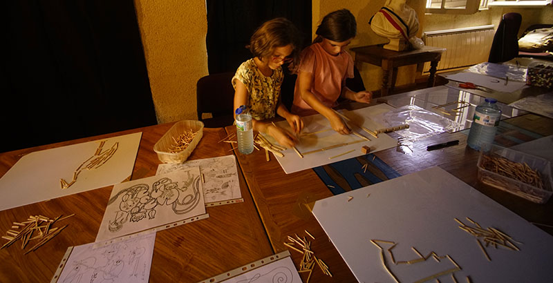 Atelier cinéma d’animation. 20 août 2022. Dans le cadre du festival de cinéma de plein air « Les tontons font leur cinéma », Auvillar, une journée était proposée pour réaliser une séquence en tournage image par image. 2 adultes et 6 enfants, 6 heures de repositionements, quelques centaines d’allumettes et autres cubes de bois, pour une minute de mouvement et d’écriture aux batonnets!