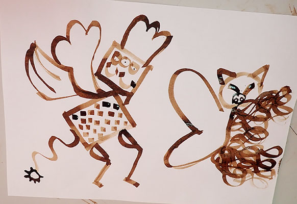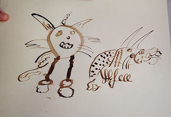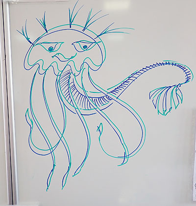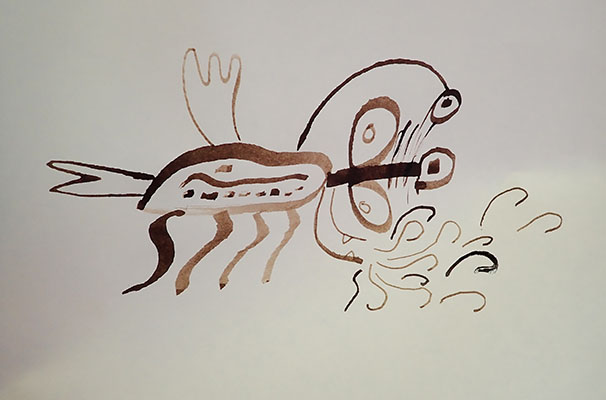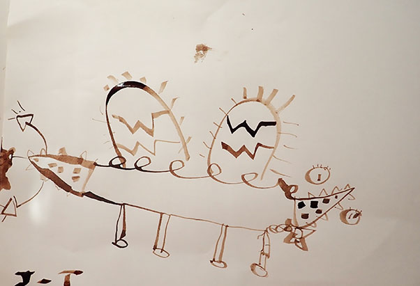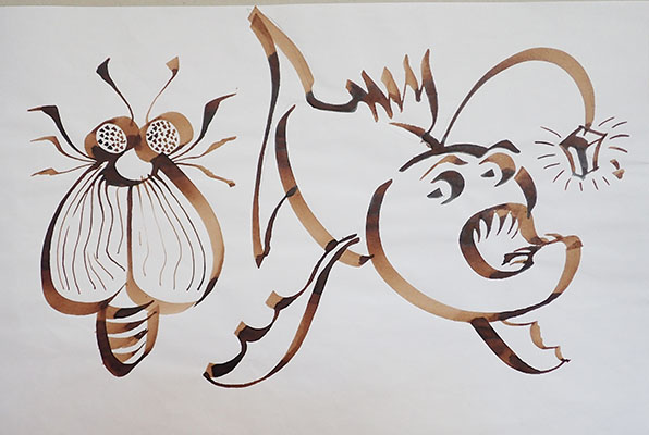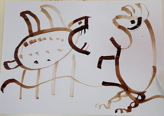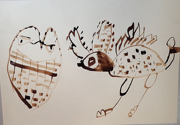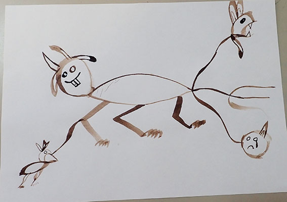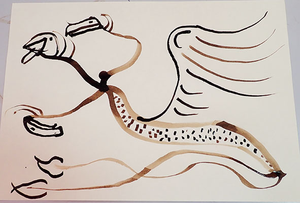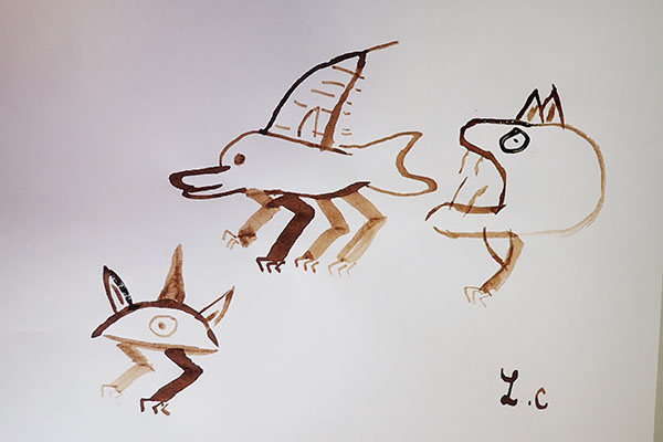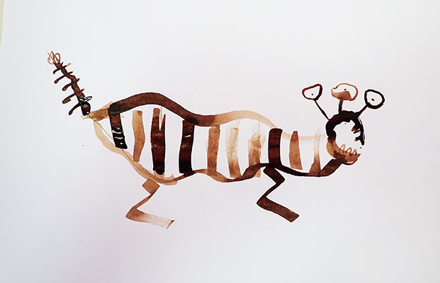 A partir de tracés géométriques simples, constructions de corps animaliers imaginaires, dérivant soit d’animaux de notre monde paraissant déjà comme extraordinaires, soit en assemblant tout et son contraire ensemble. Exemples de mes docs et extraits de travaux d’élèves.