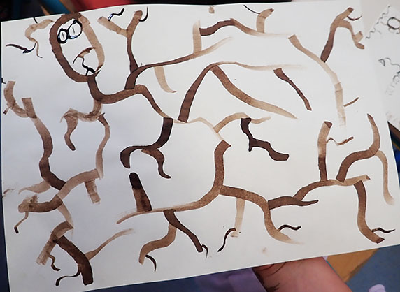 contrastes épais/fin, long/court, traits différents, formes pleines et réseaux serrés de boucles.