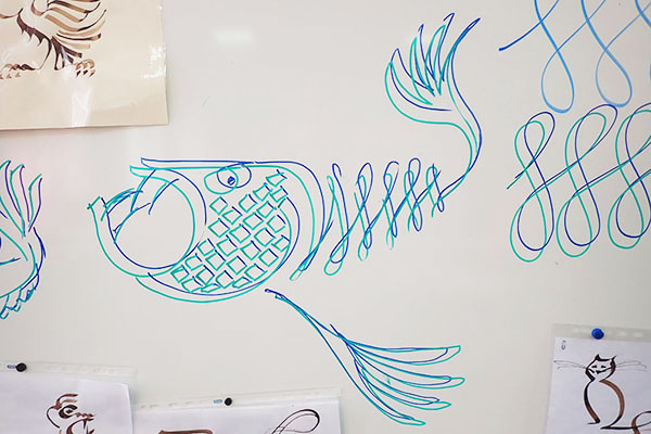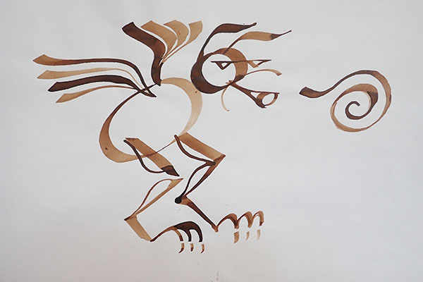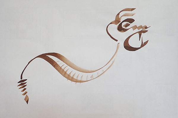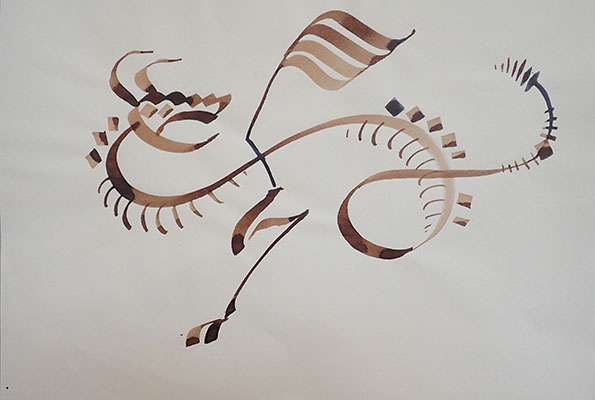 formes simples bien tendues et réseaux de boucles calligraphiques.