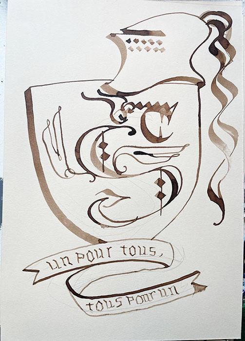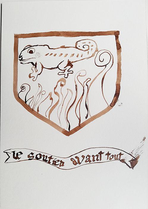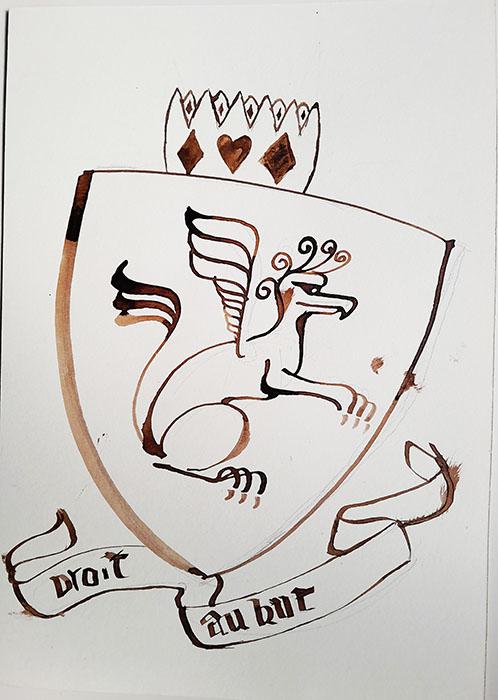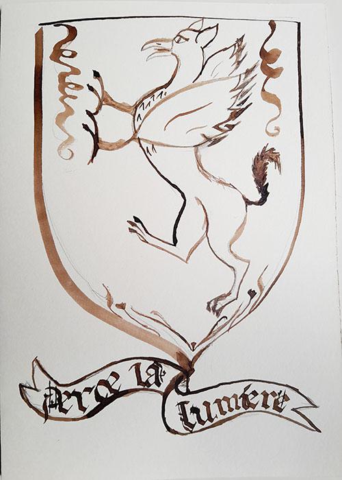 Projet printemps 2025 avec classes de 5e. Collège O. de Magny, Cahors. Introduction au dessin stylisé à l’encre et au roseau, Bestiaire de 6 documents d’animaux fantastiques ou symboliques au choix. Initiation à l’héraldique. Initiation à l’écriture gothique textura. Créer sa propre devise de vie, et réaliser ses propres armoiries à partir d’un écu et motif héraldique simple. Pour ceux plus à l’aise avec le dessin, possibilité d’augmenter le blason et la banderole contenant sa devise, de quelques attributs tel le timbre dont heaume, cimier, et lambrequins. Projet sur 1 séance 3h.